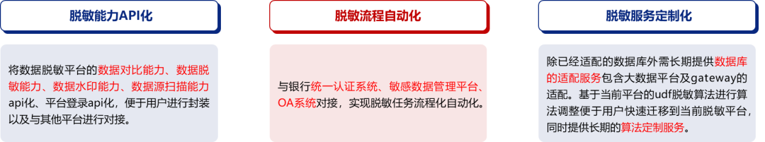 ■ 通过与客户4A平台、数据资产管理平台、OA平台进行对接整合,实现数据脱敏导数流程的线上化与自动化,导数耗时缩短80%以上。