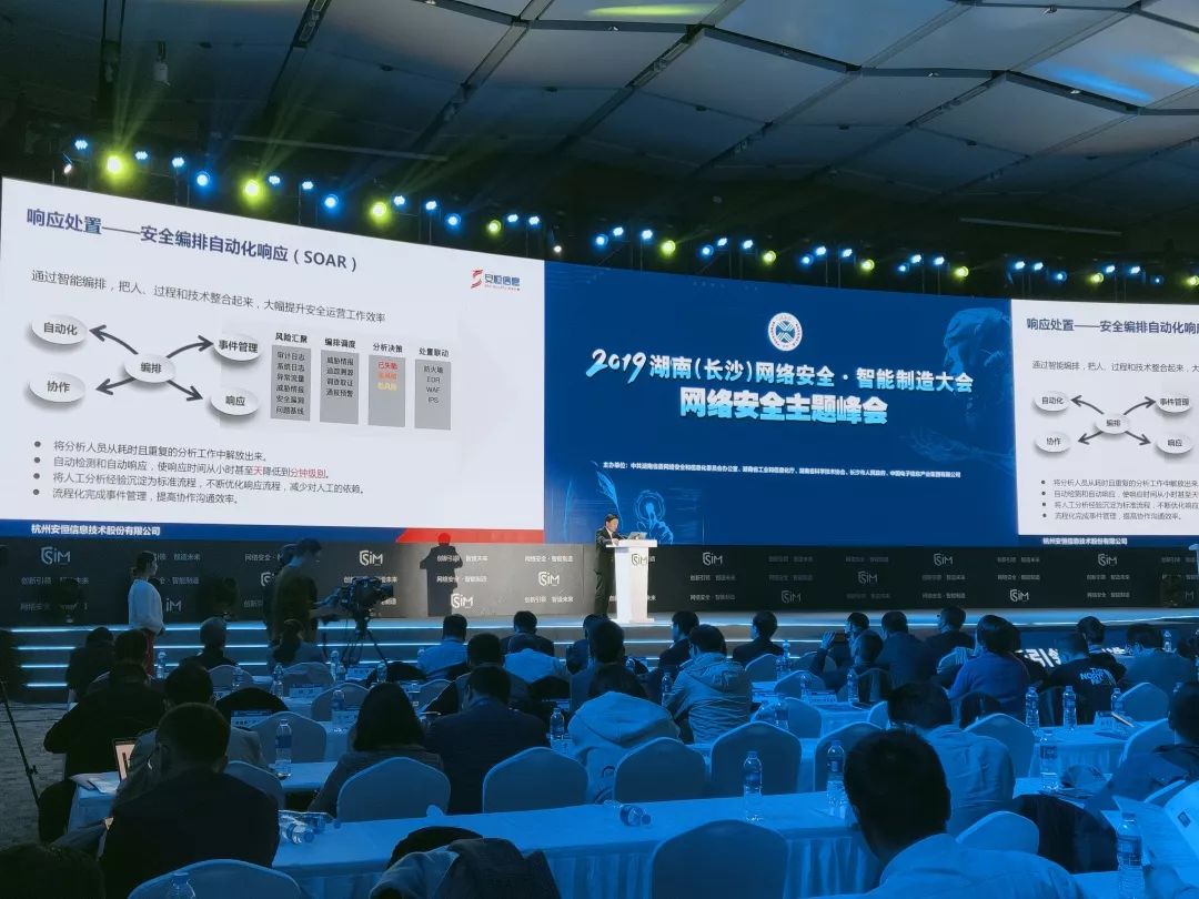 安恒信息参与到2019湖南(长沙)网络安全·智能制造大会的各项活动中,通过主题演讲、赛事支撑、应急演练比赛等方式输出安恒信息的技术理念和服务能力,助推湖南省提升网络安全综合防护能力、加强网络安全人才的挖掘和培养,全力推进网络安全建设。