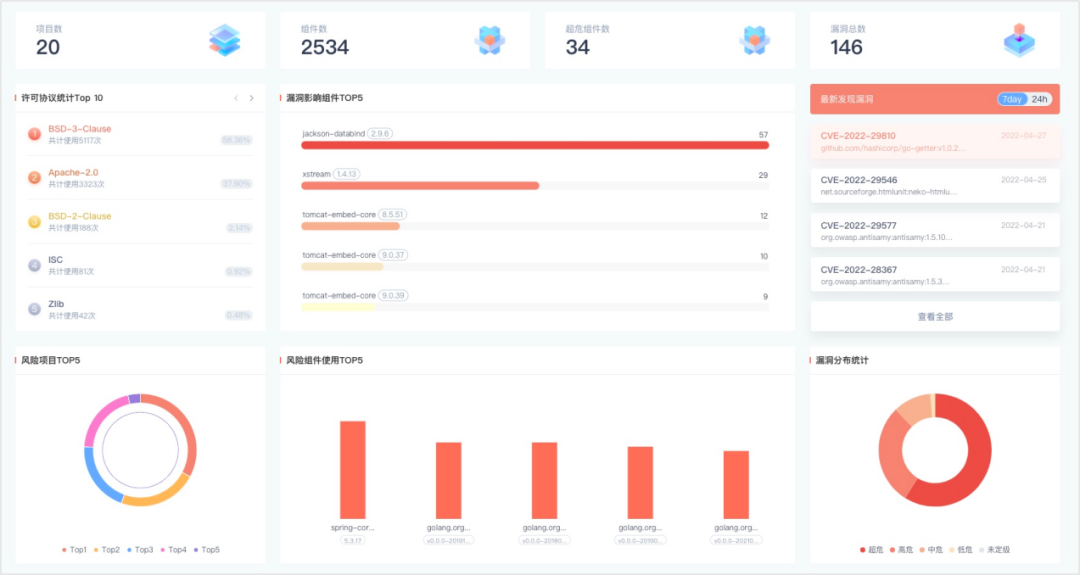 该系统能够在企业软件开发期及上线后进行风险检测和监测,形成软件应用生命周期管理。DAS-SCA支持对源代码、二进制等文件中的组件进行深层解析,实时监测0day风险。并基于机器学习技术,能够对项目引用到的组件及漏洞进行高效深层分析。