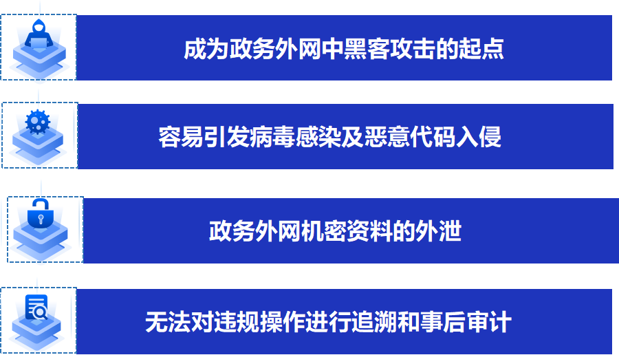 电子政务外网内违规外联行为不仅违反了相关安全规定,更埋下了数据泄露与网络安全隐患的定时炸弹。主要危害如下: