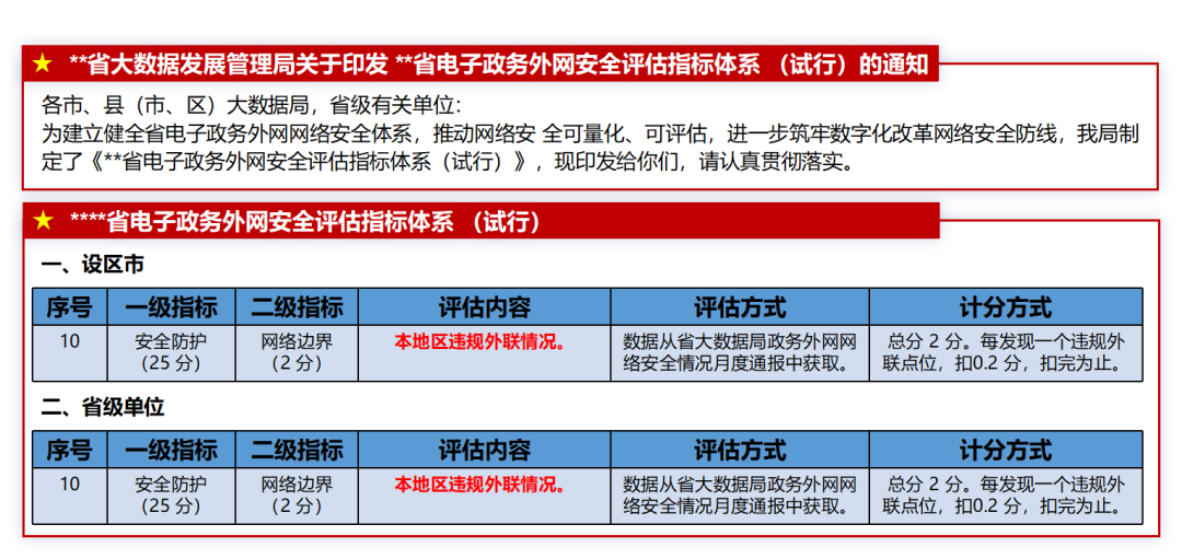 某省大数据发展管理局《浙江省电子政务外网安全评估指标体系(试行)的通知》