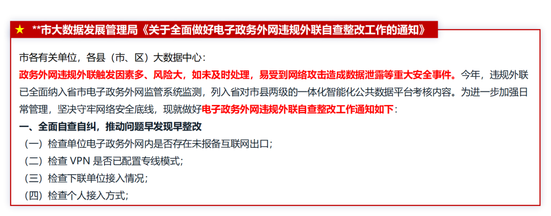 某市大数据发展管理局《关于全面做好电子政务外网违规外联自查整改工作的通知》