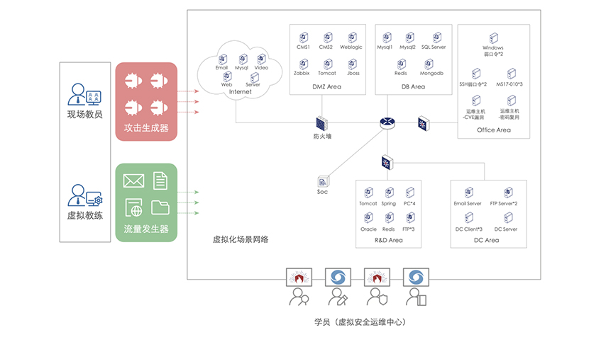 RPG靶场模拟了真实的企业网络拓扑和业务环境,以此搭建了部署有虚拟安全设备,预设白流量(即业务流量)和攻击流量的训练场景。在虚拟教练指导下,以真实拓扑、真实应用、真实时间为背景,以kill chain为逻辑,培养SIEM/SOC团队分析、排查和溯源能力。通过全生命周期的安全事件应急响应训练,安全人员可以更加直观地掌握实际工作中应对安全事件的处置思路和方法,有效提升安全人员的基本素质。