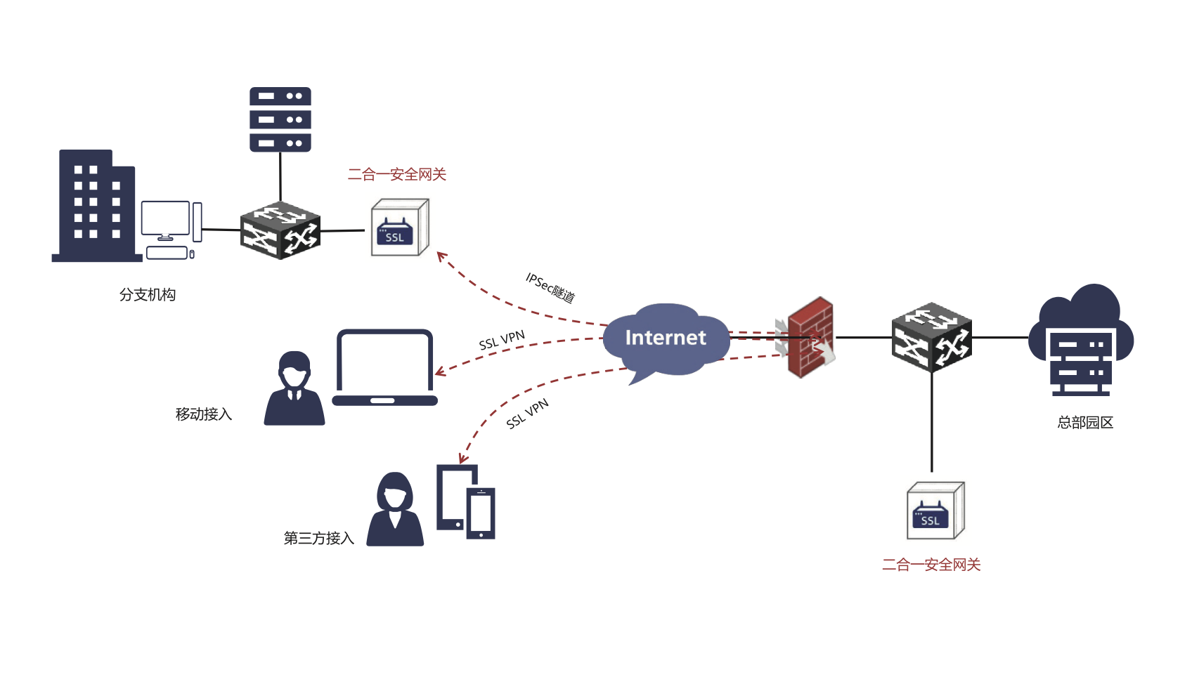 IPSec/SSL VPN综合安全网关是一款能够有效防止业务数据在网络传输中被窃取、篡改的网络安全产品,为用户提供了完善的内部网络或应用程序的安全远程接入服务以及各分支机构局域网之间的数据安全传输和安全访问服务。